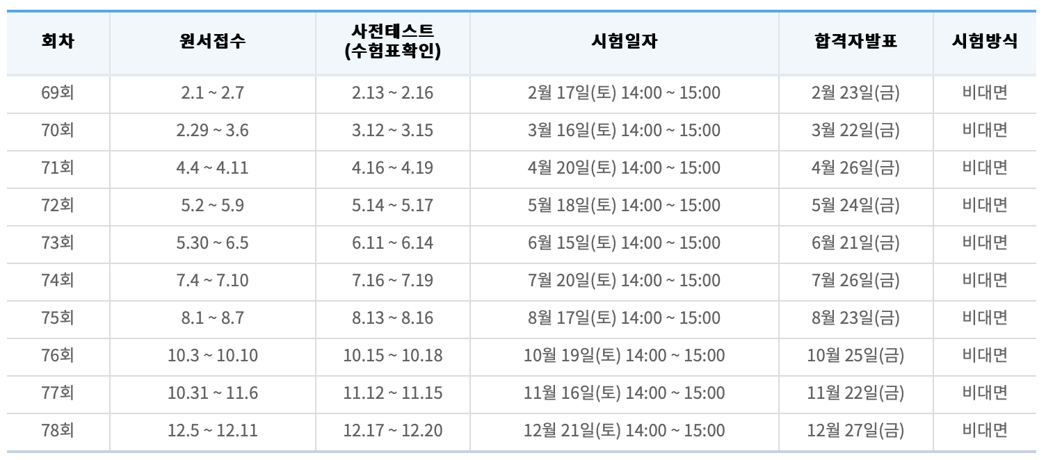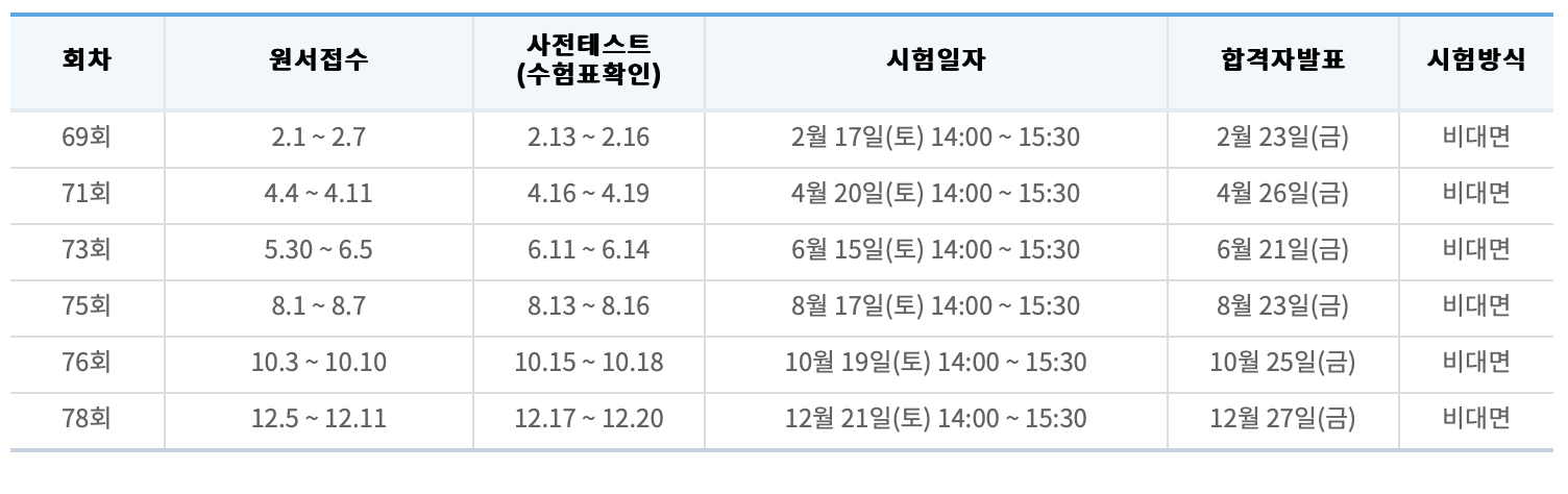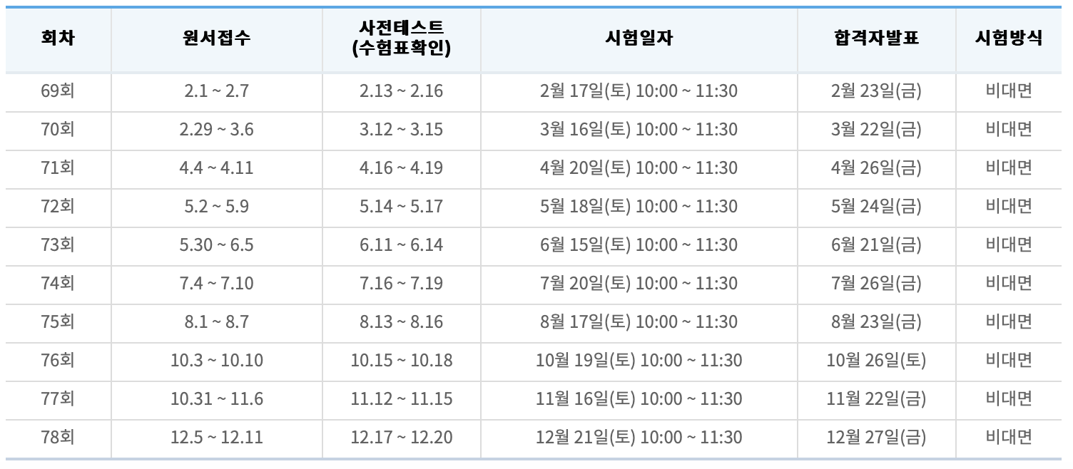 2022년부터 비대면 온라인시험 방식으로 시행되었습니다.