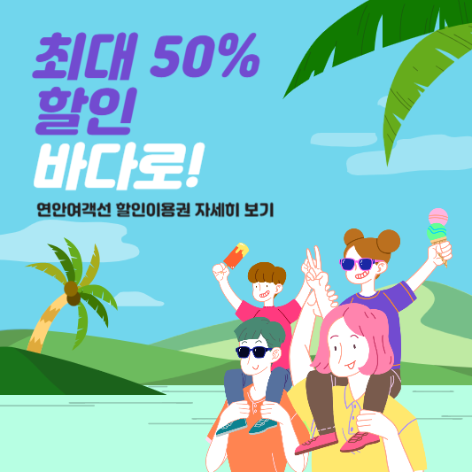 최대 50% 여객선 할인권 '바다로'를 꼭 확인해 보세요!
