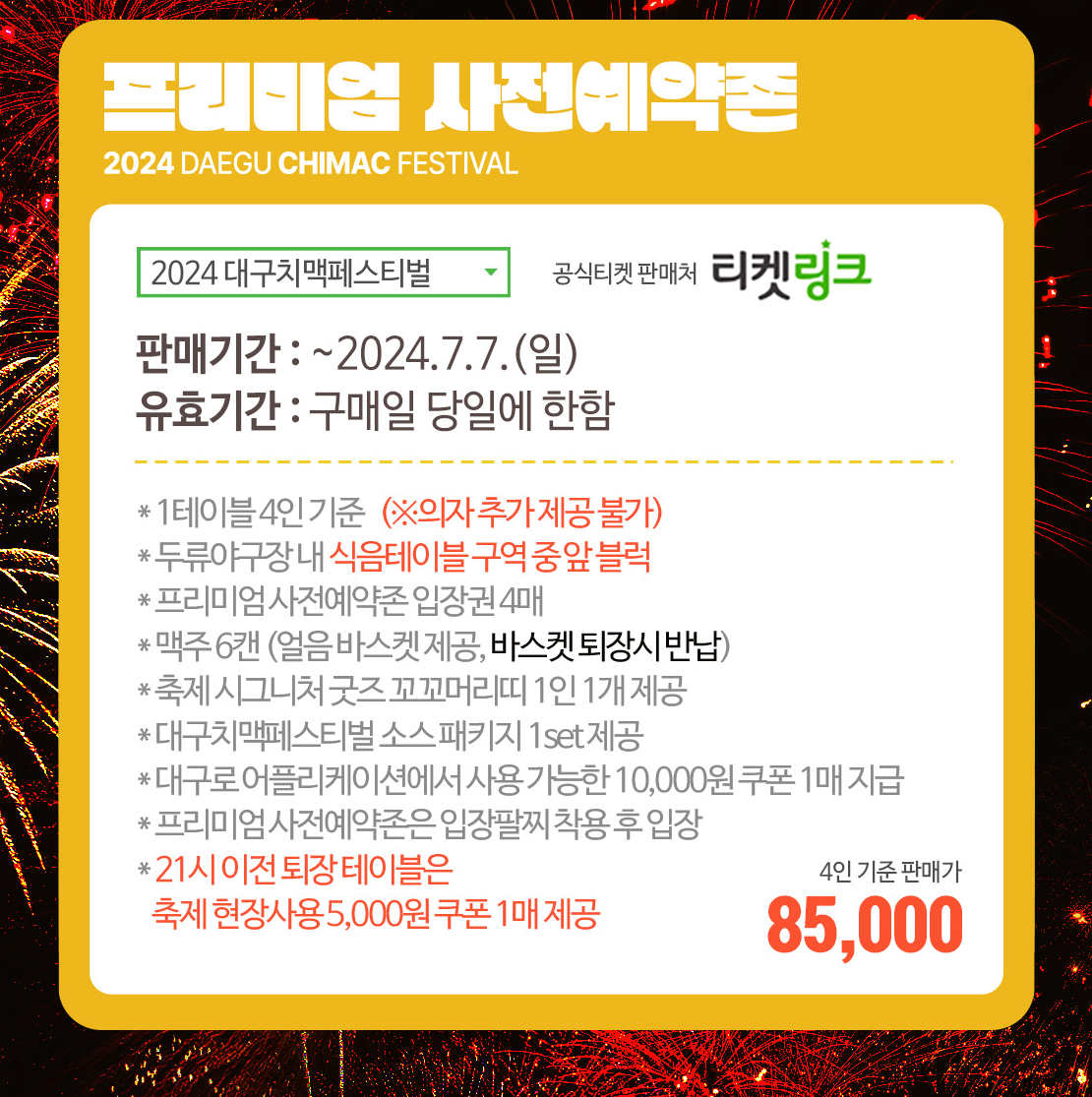 [티켓링크] 2024 대구치맥페스티벌 <프리미엄 사전예약존>