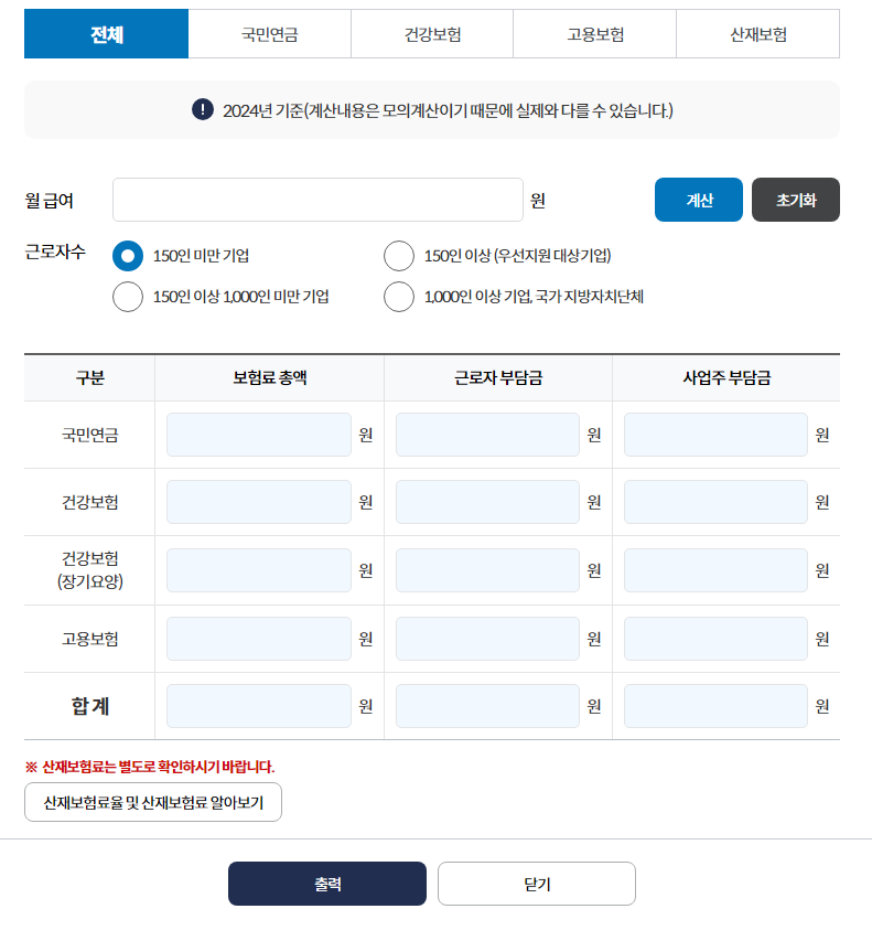 4대보험 계산기로 근로자 부담금, 사업주 부담금을 알아보겠습니다.